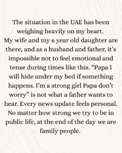 ਫ਼ੋਨ ‘ਤੇ ਗੱਲਬਾਤ ਦੌਰਾਨ ਐਮੀ ਵਿਰਕ ਨੇ ਦੱਸਿਆ ਕਿ ਉਨ੍ਹਾਂ ਦੀ ਬੇਟੀ, ਪਤਨੀ ਅਤੇ ਭੈਣਾਂ ਦੁਬਈ ਵਿੱਚ ਫਸੀਆਂ ਹਨ।